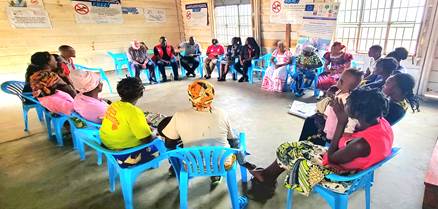 EASE caregivers sharing the impact of EASE intervention in their families and communities to the Donor during the Global Donor visit in Rhino Settlement